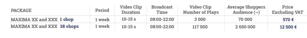 Retail Media Baltic is managing the largest TV displays in-stores video advertising network which operates in the biggest Maxima retail stores.